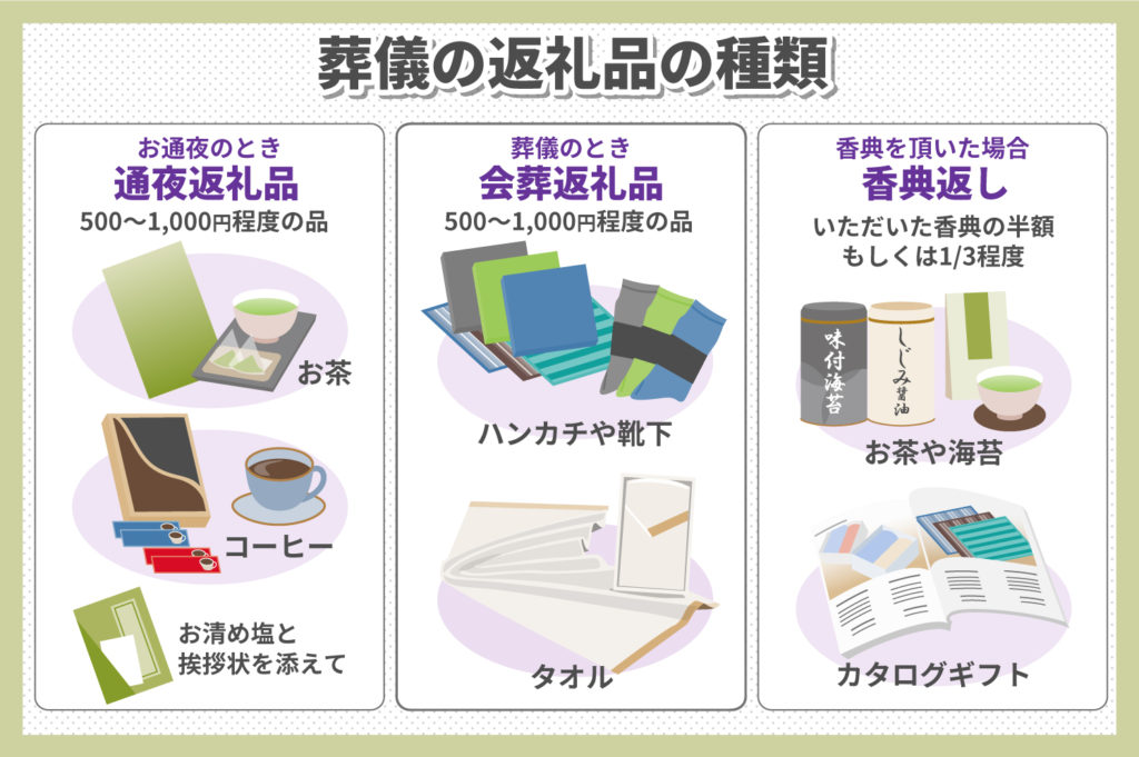 お通夜式・葬儀式のお返し 粗供養品 や香典返しなど返礼品について 家族葬・自宅葬専門フローリー。