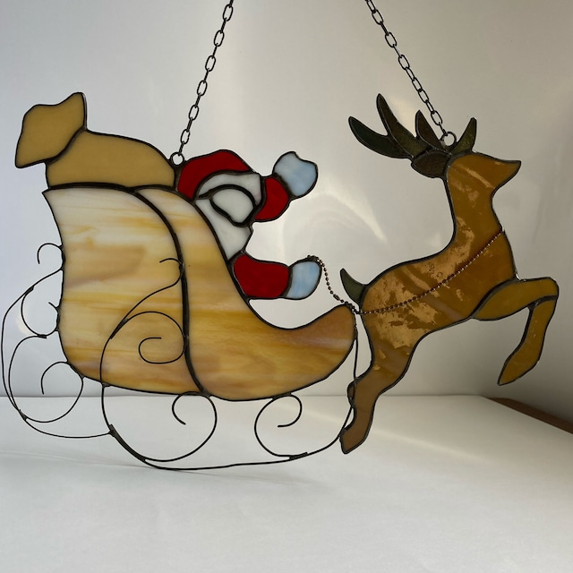 クリスマス☆ソリ☆サンタクロース トナカイ サンタとトナカイとプレゼントを積んだソリの。