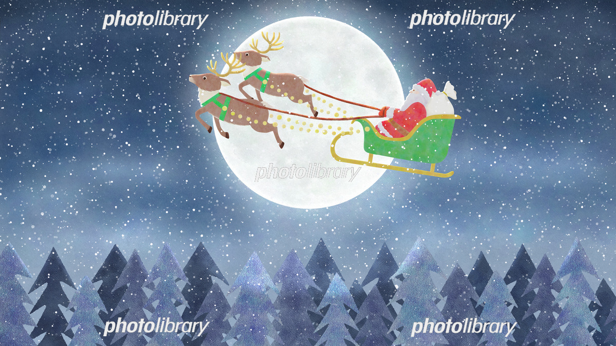 トナカイのそりに乗るサンタさんと雪の夜の背景 かわいいクリスマスイラスト イラスト素材7380362- フォトライブラリ。