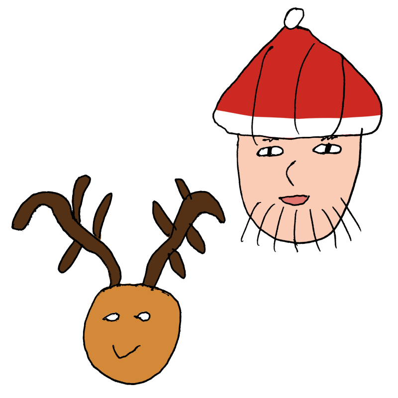 ヘタウマなサンタとトナカイのイラスト - ONWAイラスト。
