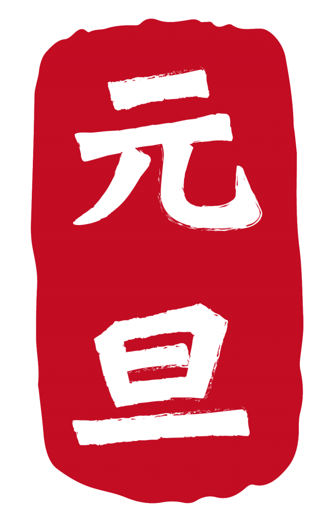 元旦文字☆手彫り風はんこスタンプ年賀状フリー素材イラスト。