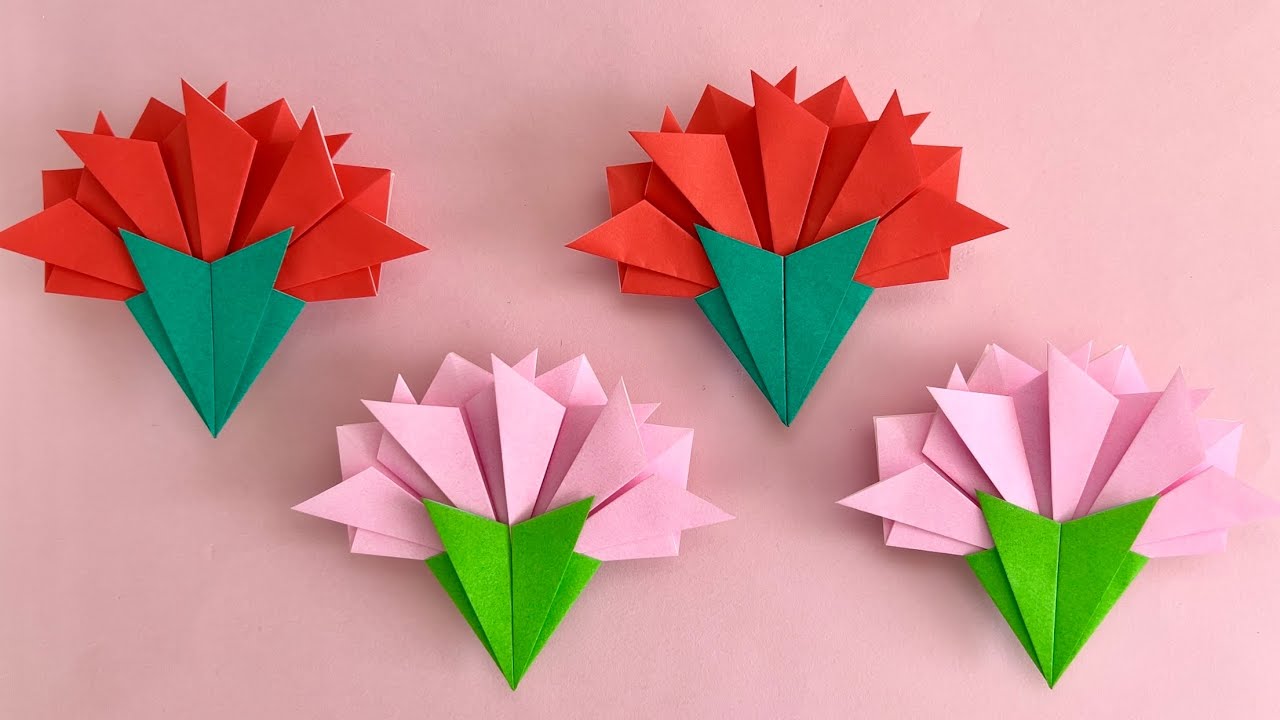 母の日に♪折り紙1枚で簡単に出来る カーネーション の折り方。