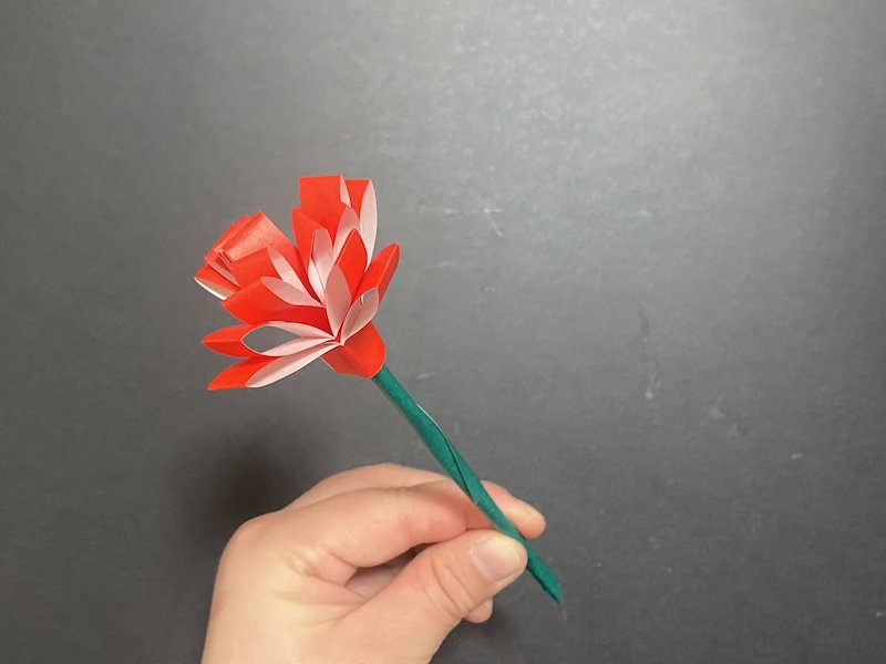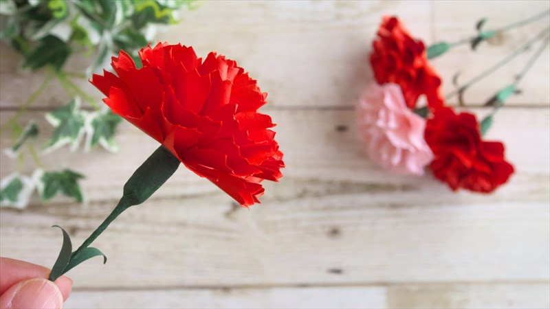 紙で作る母の日のカーネーションの作り方 茎付き 本物そっくり!見たものクリップ。