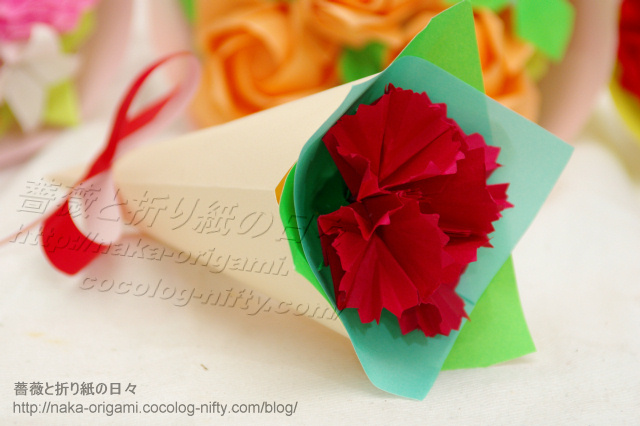 簡単なカーネーションと花束の作り方-1: 薔薇と折り紙の日々。