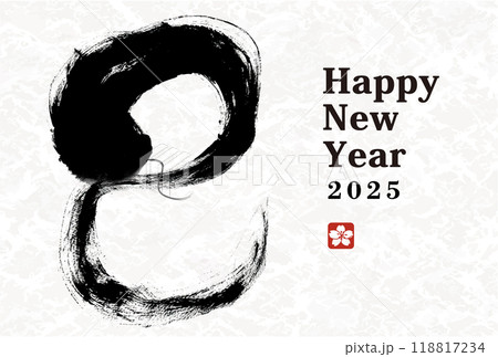 年賀状 デザイン 2025年 巳年 年賀状用テンプレート 巳手書き和風筆文字入りのイラスト素材118817234- PIXTA。
