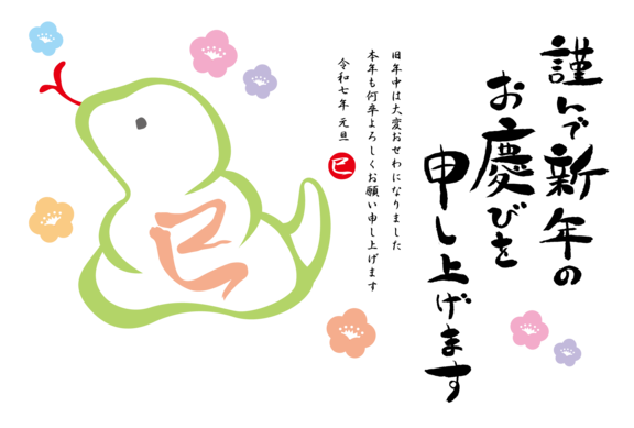 年賀イラスト素材 - 2025年 令和7年 巳年 へび 無料年賀状・喪中はがき イラスト&テンプレート Andante。
