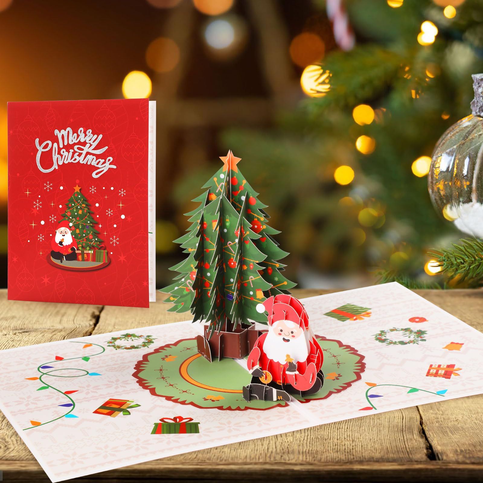 WD&CD クリスマスカード 立体 3D クリスマスツリー ポップアップ サンタクロースカード グリーディングカード クリスマスメッセージカード飛び出す クリスマス飾り 手作りギフト ホリデー ギフト クリスマスの願い 挨拶 封筒付きミツケヨ。