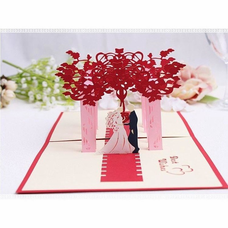 ウェディングカード ポップアップカード メッセージカード ご結婚お祝い 結婚 ウェディング お祝い 新郎新婦 3D 立体 飛び出す グリーティングカーLINEブランドカタログ。