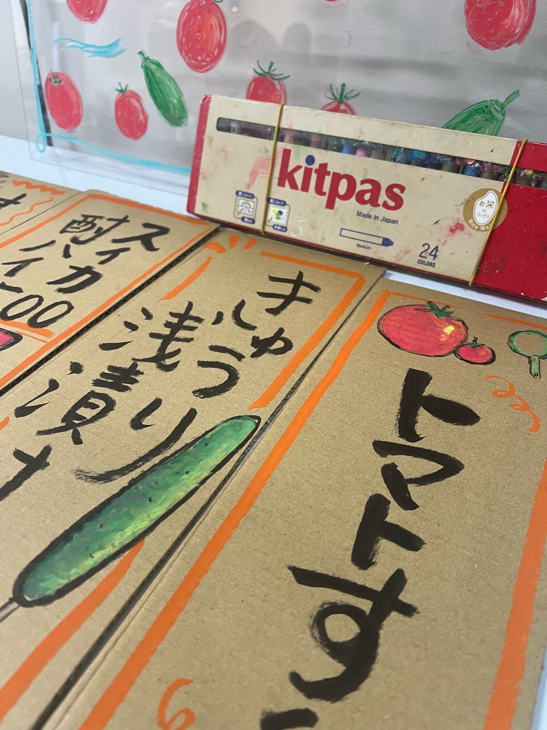 こんにちは😊はぐくみプラスです⭐ 🌟段ボールでつくる!夏祭りの手作り看板🎐 夏祭りをもっと楽しく!みんなで協力して、大きな看板を手作りしました✨使ったのは、身近にある段ボールと絵の具や折り紙、シールなどの装飾グッズ! 段ボールを好きな形に切ったり、色を。
