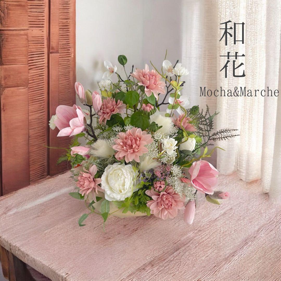 新年を彩る和のアレンジメント 正月アレンジ 光触媒フラワー しめ飾り 正月飾りMocha&Marche モカアンドマルシェ フラワーショップ。