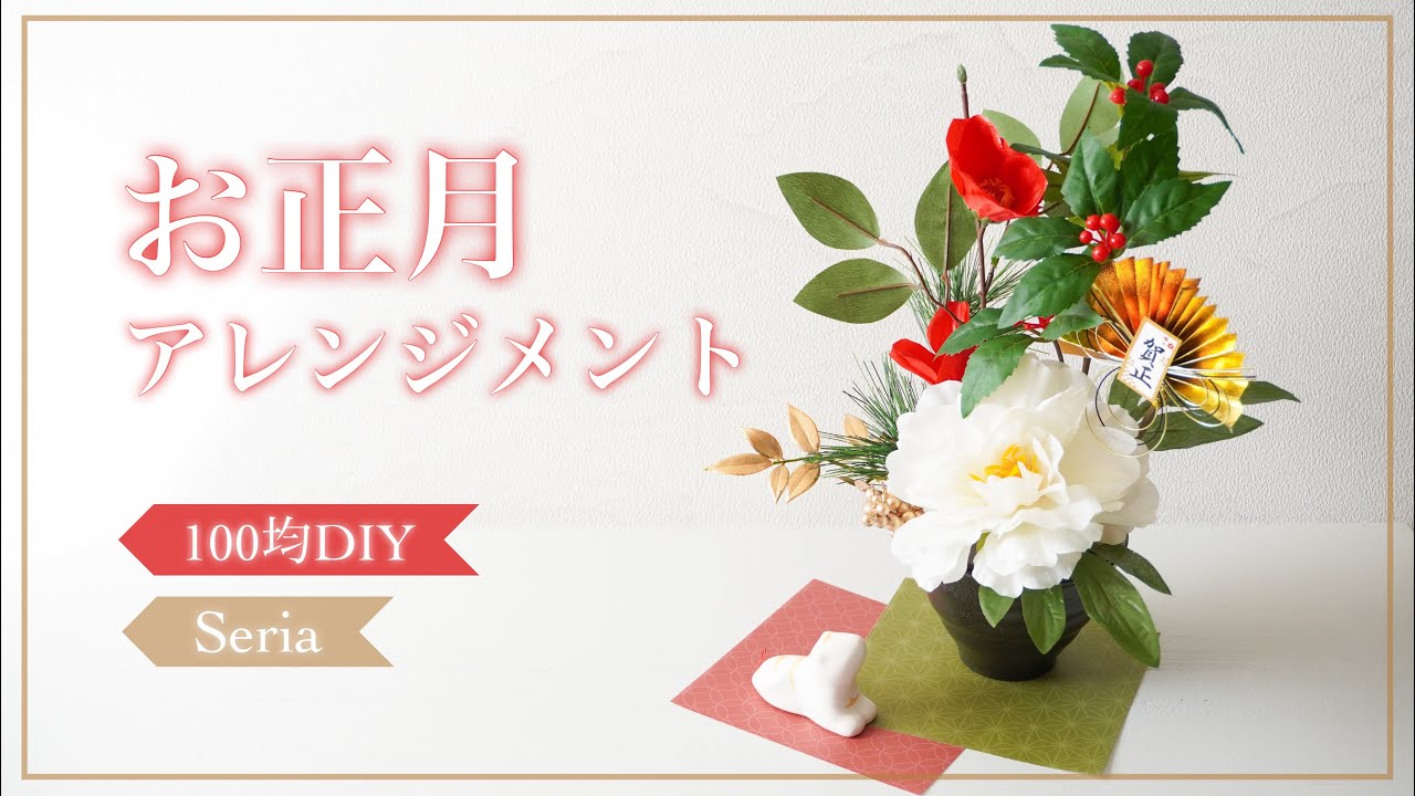 100均造花 セリア お正月アレンジメントの作り方 挿す位置解説 簡単おしゃれに手作り。
