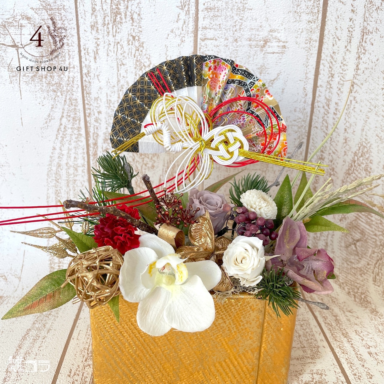 モダン お正月アレンジメント お正月飾り アーティフィシャルフラワー アレンジメント 扇子 鶴 R&yO6 アートフラワー LalagardenR&y 通販 13113507Creema クリーマ。