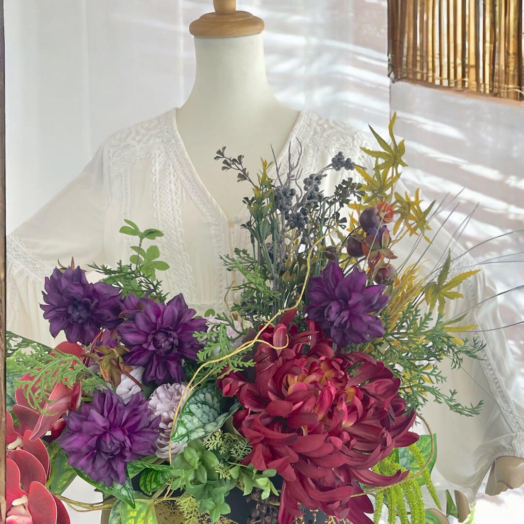 華やかな正月アレンジ 100cm 新年飾り アーティフィシャルフラワー 正月生花 しめ飾り 光触媒 送料無料 花 造花 オブジェ インテリア 縁起担ぎ風水 和アレンジメント お正月 迎春 正月 - モカ&マルシェminne byGMOペパボ 国内最大級のハンドメイド・手作り通販サイト。