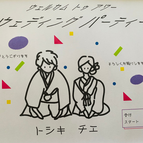 エモい 80年代風 ウェルカムボード 結婚式披露宴 二次会 パーティー ウェディング 受付 ウェルカムボード benio 通販16062362Creema クリーマ。