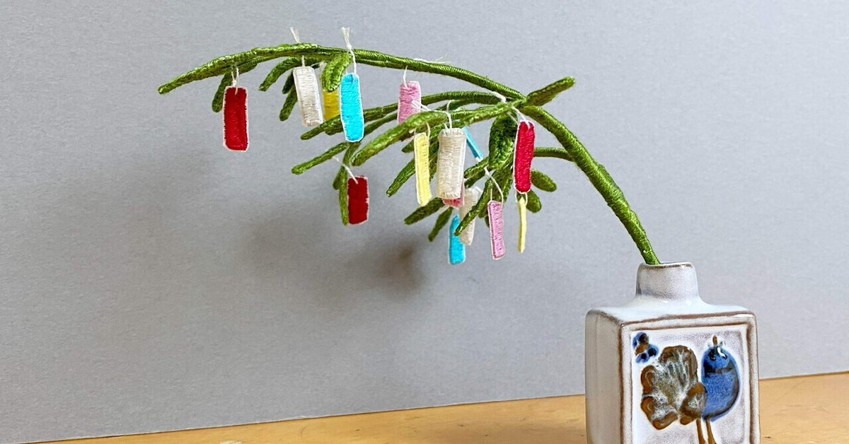 七夕笹飾り立体刺繍の作り方 無料型紙 水谷禎子 みずたにさちこ。