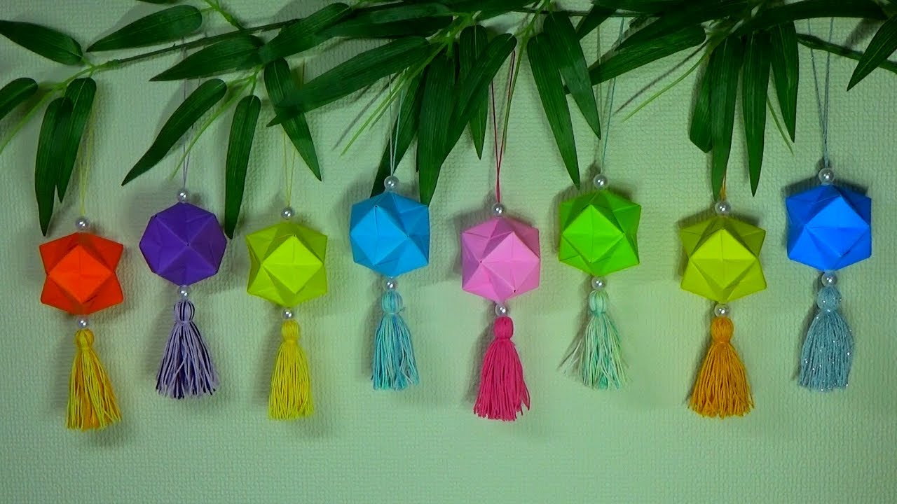 折り紙 七夕飾り簡単で可愛い!くす玉の笹飾り 吹き流し風 の作り方 DIYorigami Easy and cute! Kusudamahanging decoration。