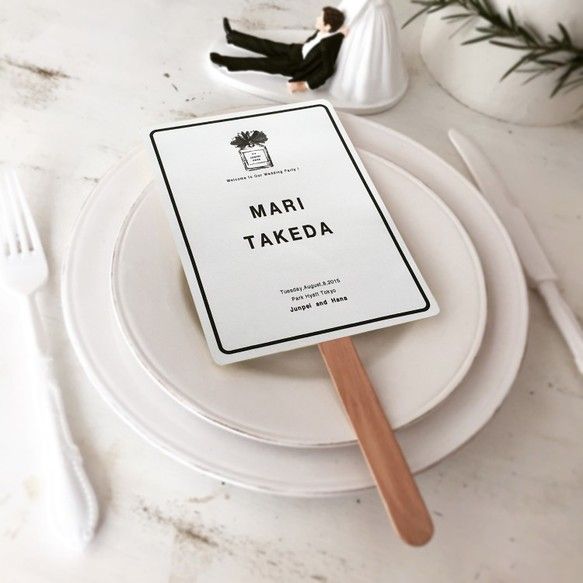 結婚式席札 シックな色合いが素敵 席札コンパクトうちわクラウン 30本〜Buyee。