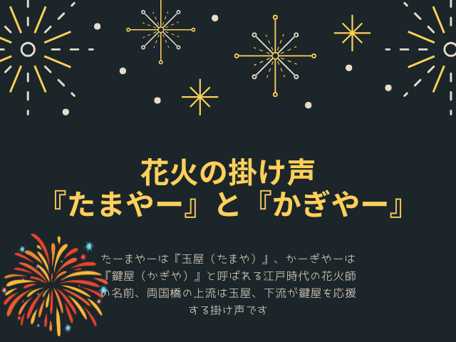 由来 花火の掛け声の『たまやー』と『かぎやー』の意味は花火師の名前。