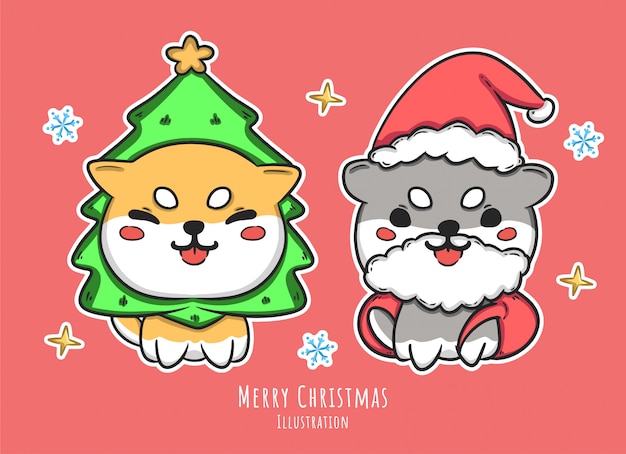 かわいい動物のイラストデザインでかわいいメリークリスマスカードPremiumベクトル素材。