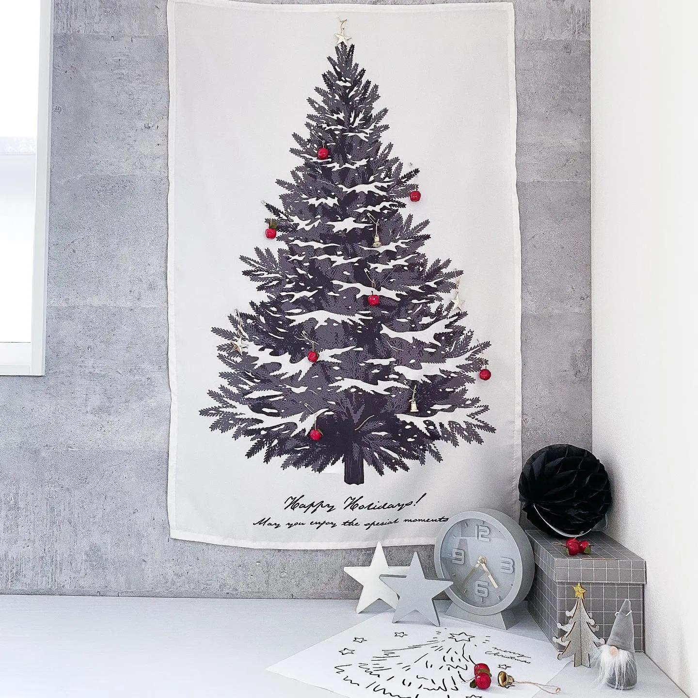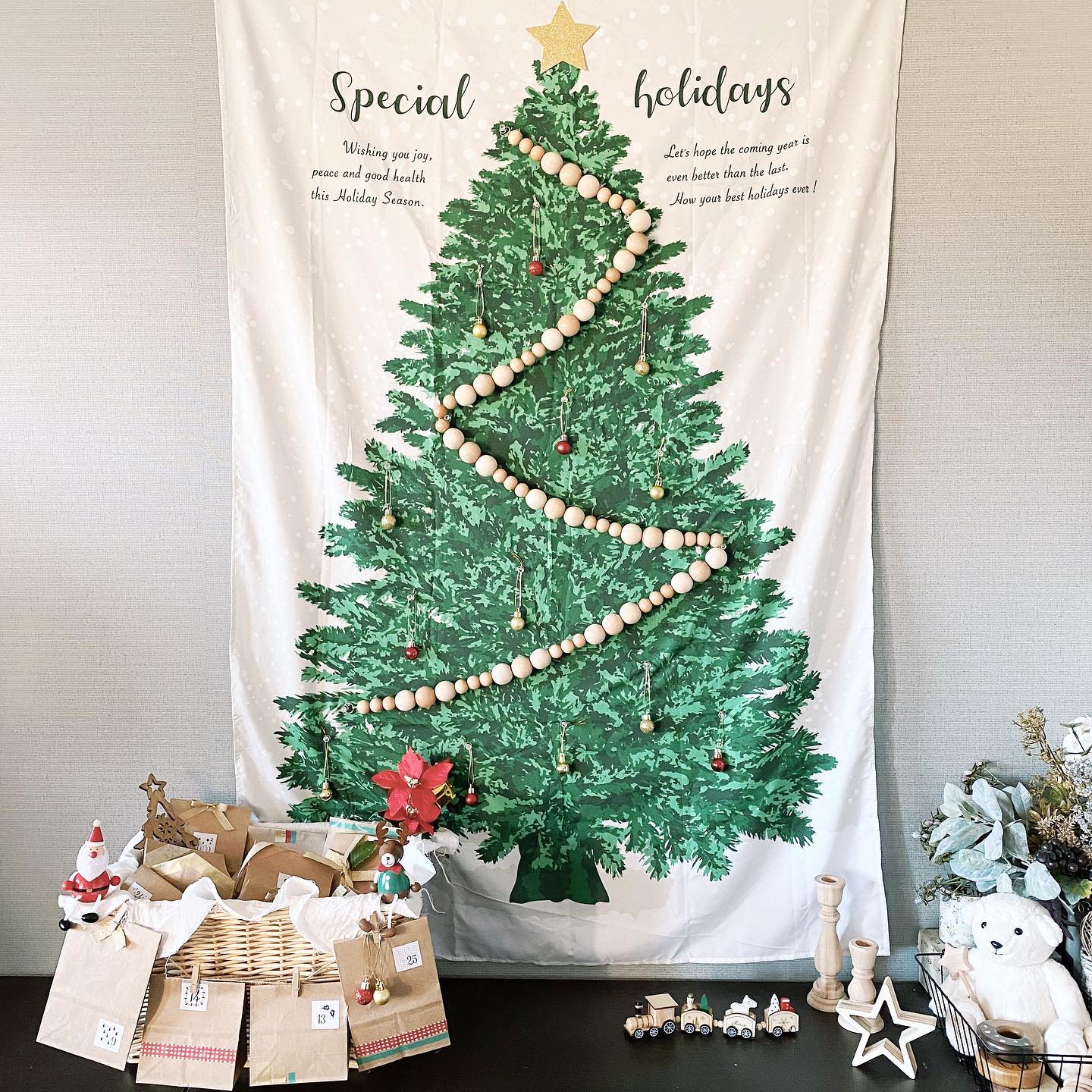 100均でも買えるよ♪クリスマスツリーが置けないおうちに「ツリータペストリー」のすすめえんウチ。