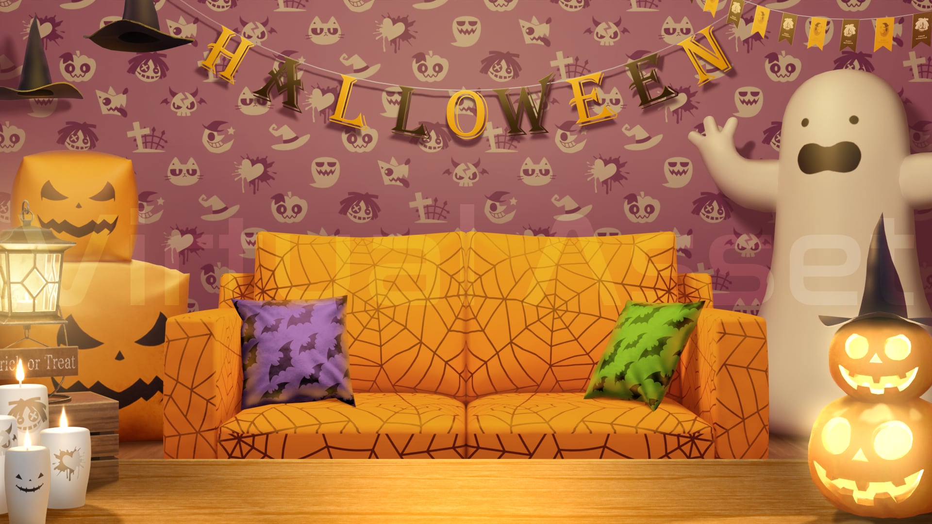 ハロウィン仕様のお部屋 アニメ風 6枚。