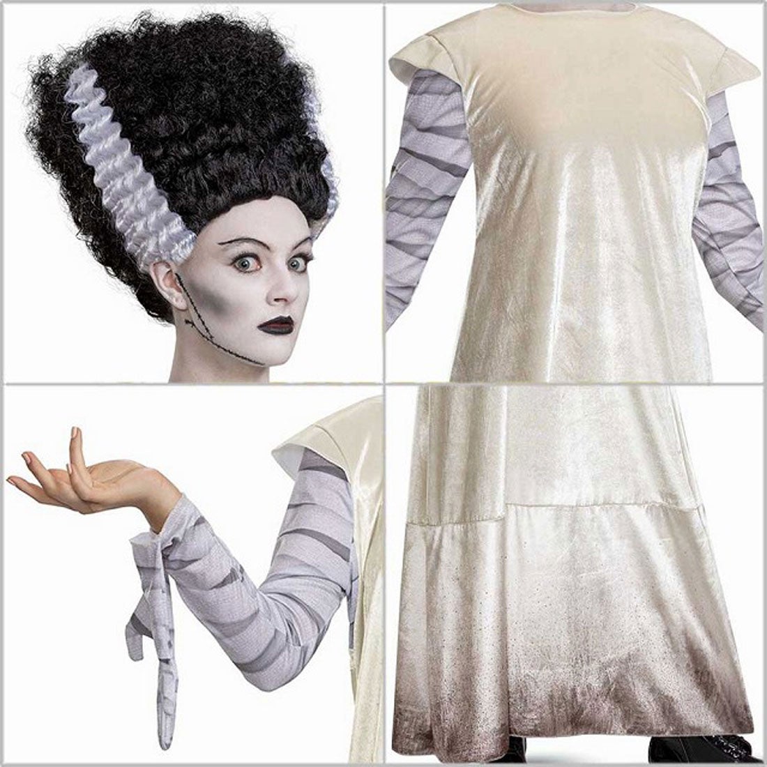 ハロウィン コスプレ 仮装 ユニバーサルモンスターズ フランケンシュタインの花嫁 ホラー 2点セット 全身 大人用 レディース M 返品不可商品ホワイト。
