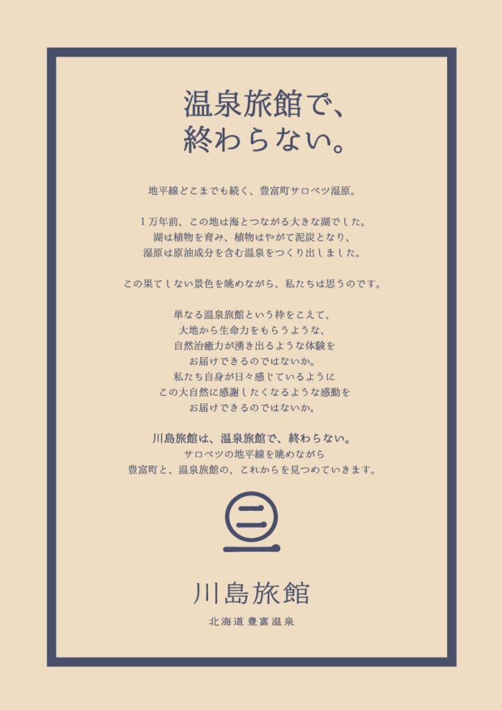 新年のご挨拶川島旅館 公式 天然オイルバス 北海道豊富温泉。