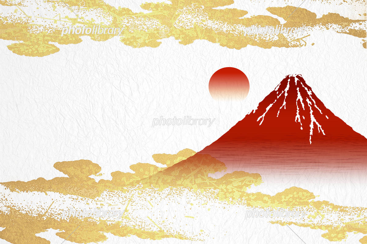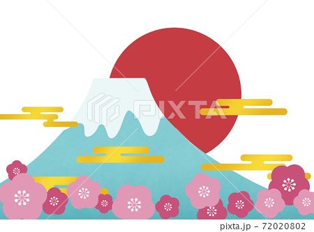赤い太陽と梅の花と金色の和風の雲と富士山の風景のイラスト素材72020802- PIXTA。