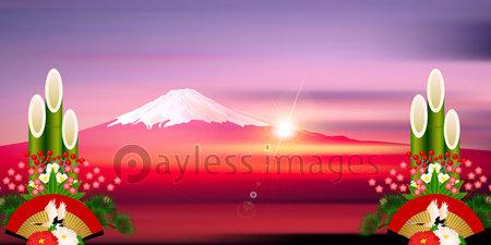 富士山 日の出 正月 背景 - 商用利用可能な写真素材・イラスト素材ならストックフォトの定額制ペイレスイメージズ。