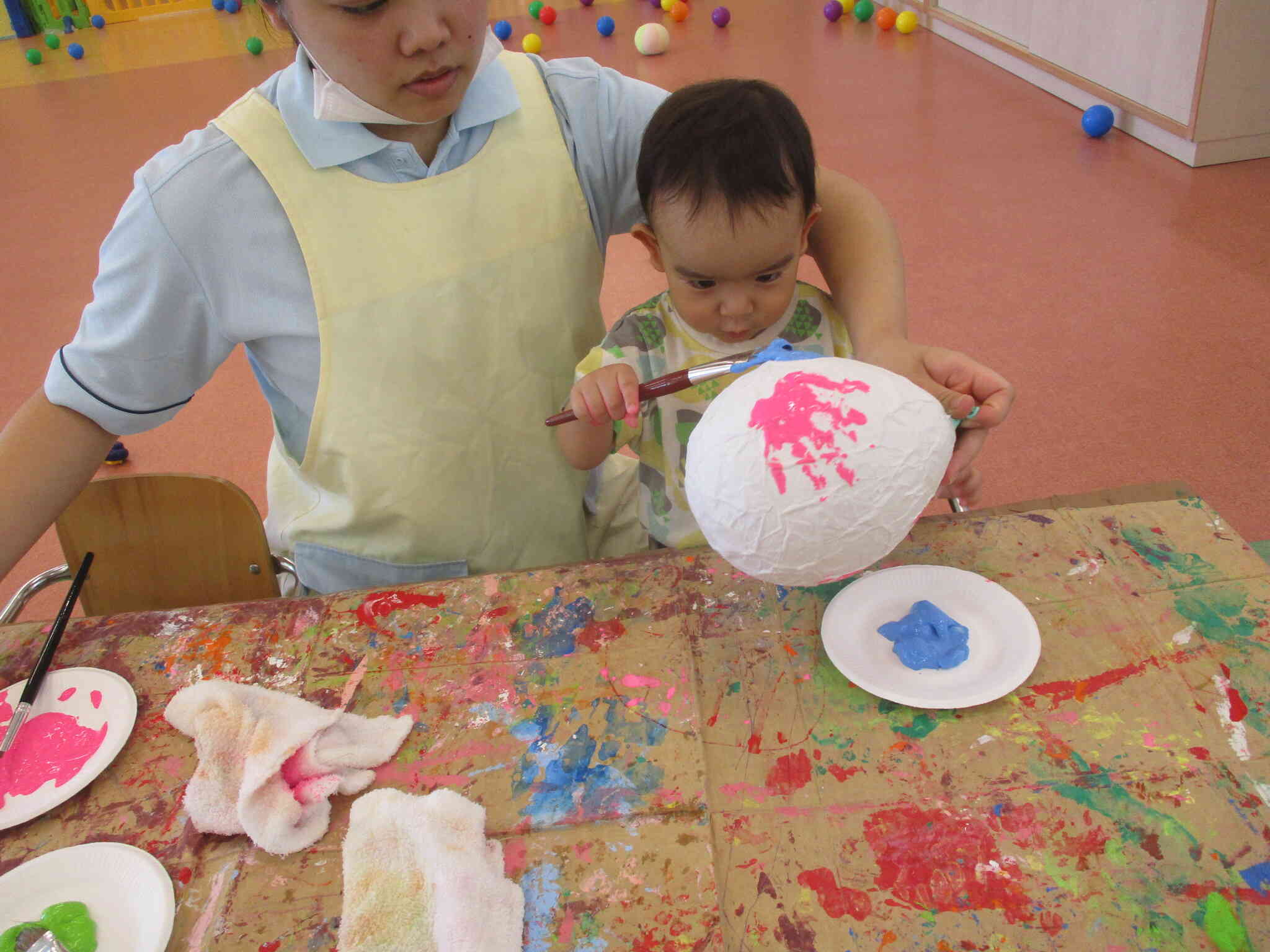 6月「ちょうちん作り」2歳児#1ぷらいむキッズかしまだ保育園。