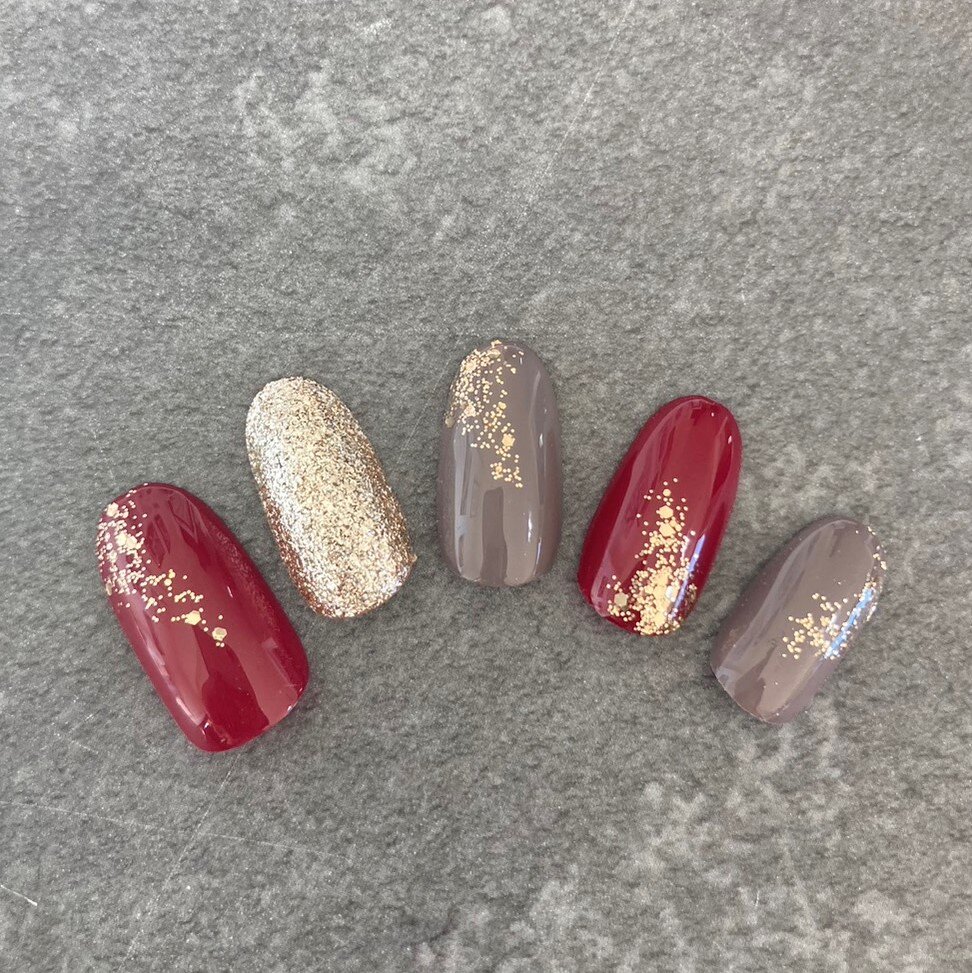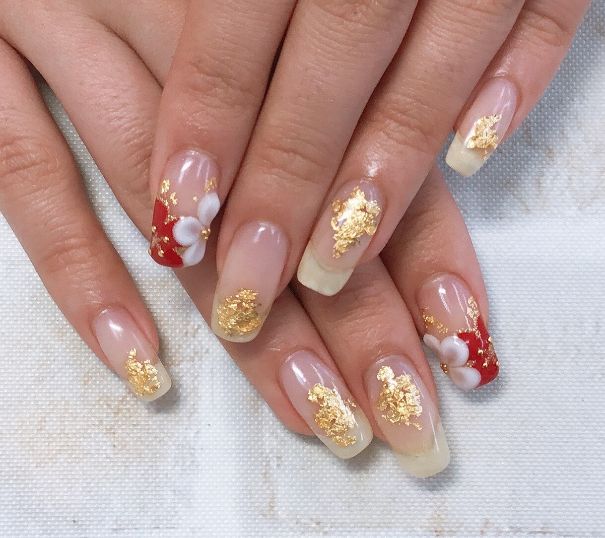 駆け込みOK♡クリスマスからお正月まで楽しめる金箔ネイルデザイン。