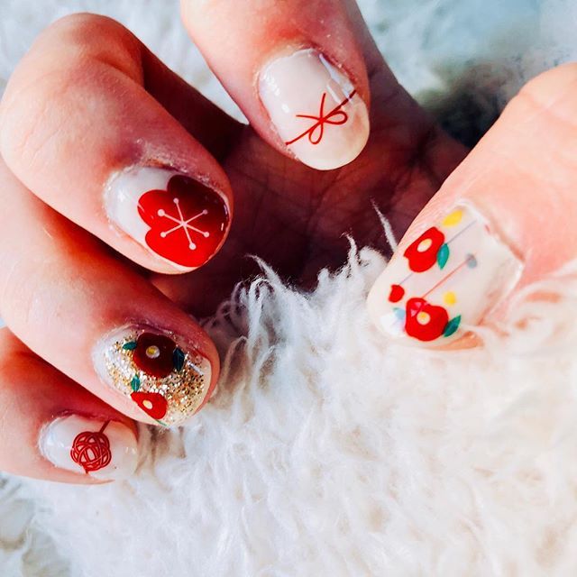 お正月に向けての和風ネイルうめりのセルフネイル。