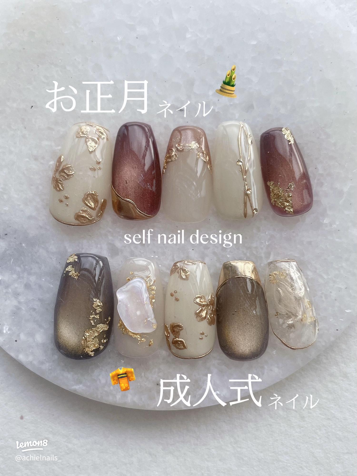お正月成人式ネイルデザイン2023年最新トレンドyuyuのセルフネイル。