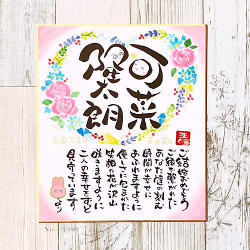 名前詩・名前ポエム色紙額~カラフルハート~誕生日・結婚祝い・ウェディング・還暦 開運筆文字ギフト・ネームインメッセージ 書道 言の葉遊書 氣樂屋 通販4820763Creema クリーマ。