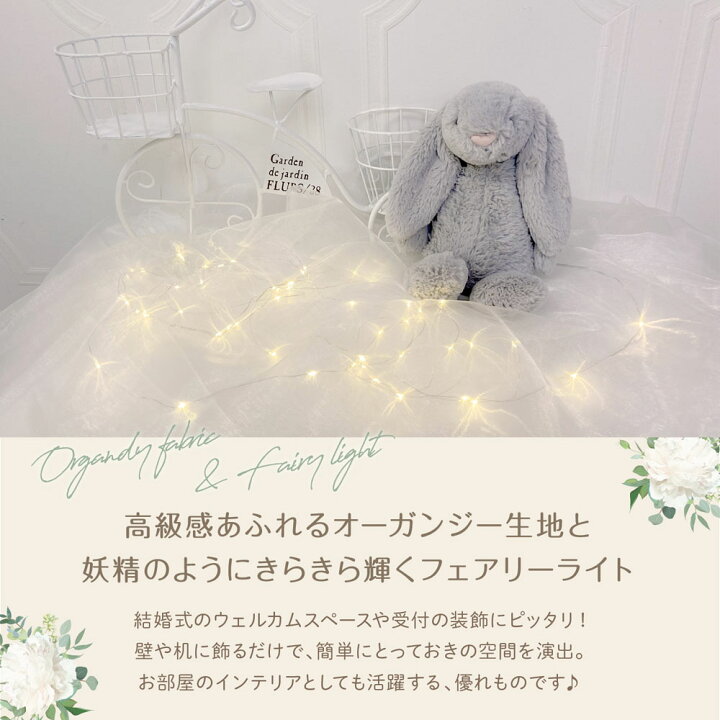 楽天市場 結婚式 飾り付け ウエディング ウェルカムスペース 受付 飾り オーガンジー チュール 布 前撮り フェアリーライト ジュエリーライトクリスマス 二次会 誕生日 ガーランドライト オーガンジー&LEDライト regalo : YOU+。