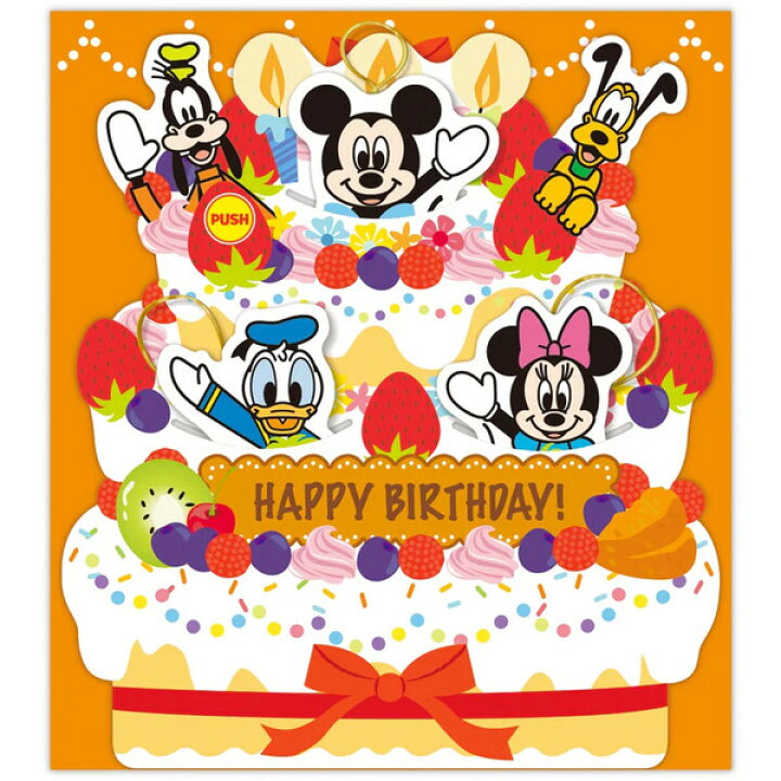 楽天市場送料無料 ディズニー バースデーカード ケーキからミッキーたち3 誕生お祝い オルゴール 曲 封筒付 ミニー ドナルド かわいい -メール便発送 : Clips クリップス。