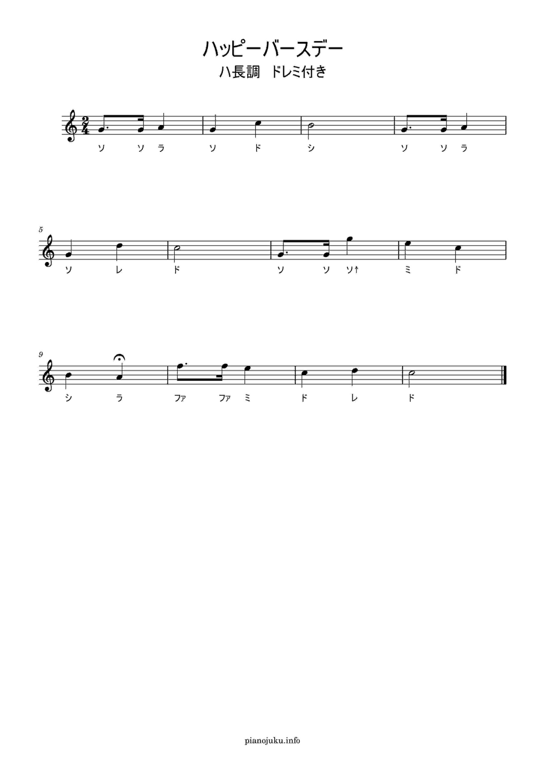 ドレミ付きあり無料楽譜 童謡_ハッピーバースデー 難易度別5楽譜ピアノ塾。
