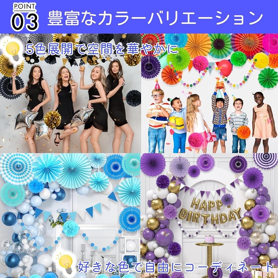 Amazon.co.jp: merrytime パーティー飾り付けセット ペーパーファン フラワー ガーランド イベント装飾 20点セット 簡単組み立て繰り返し使用 カラフル お祝い 誕生日 結婚式 マルチカラー : おもちゃ。
