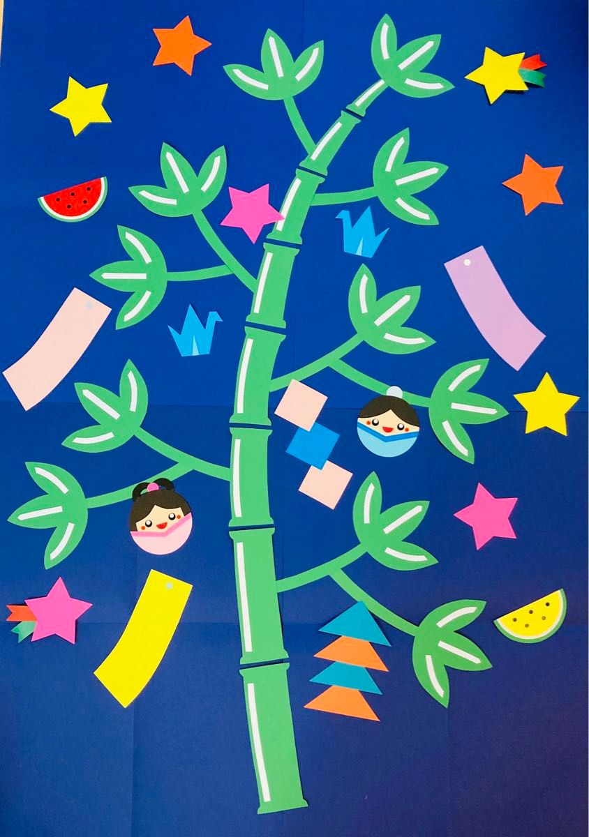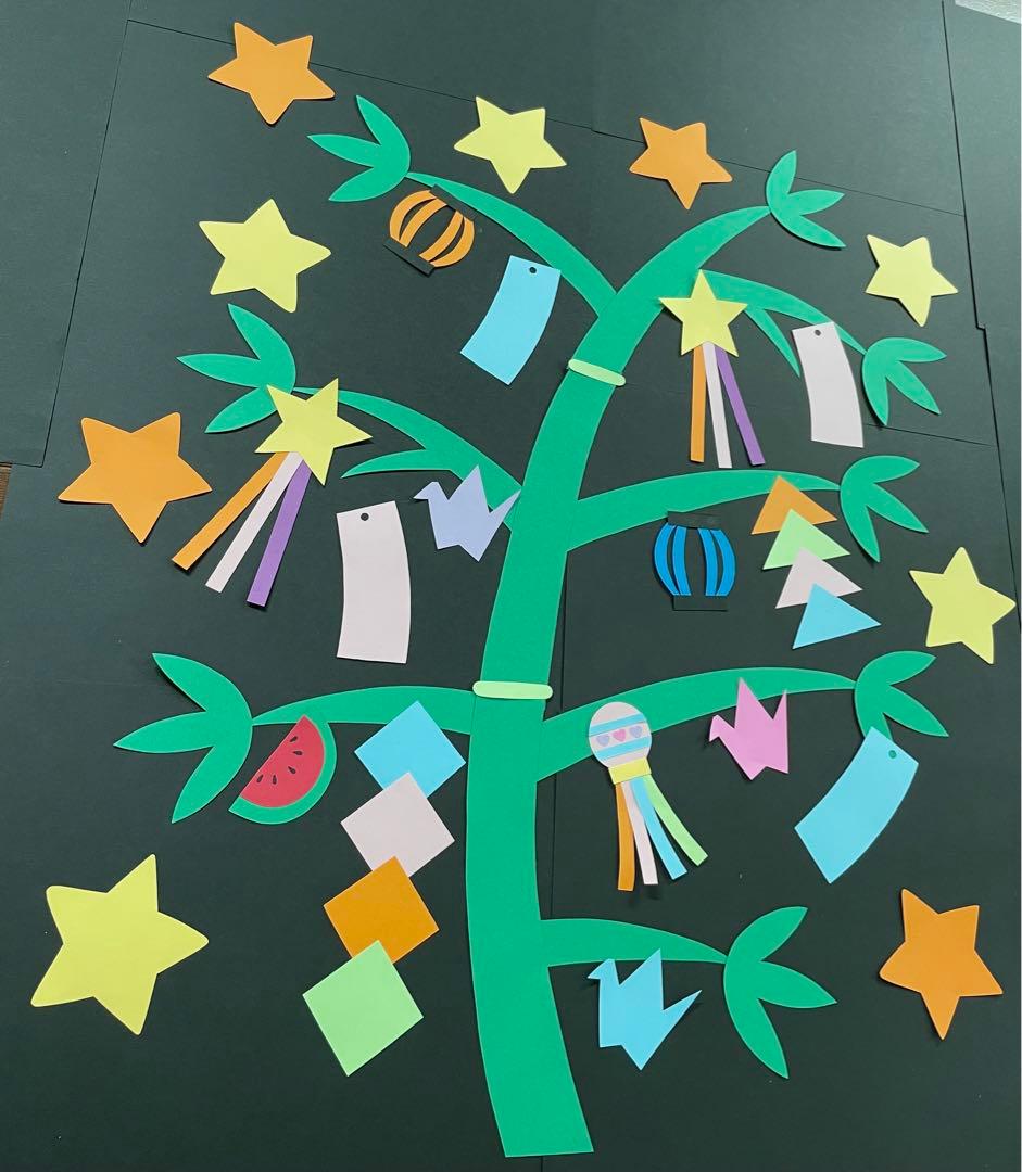 kimie gangi 7月の壁面「七夕飾り」 壁面飾り笹飾り作り方DIY季節の壁面飾りスポンジシート。