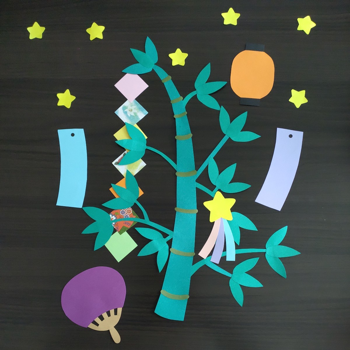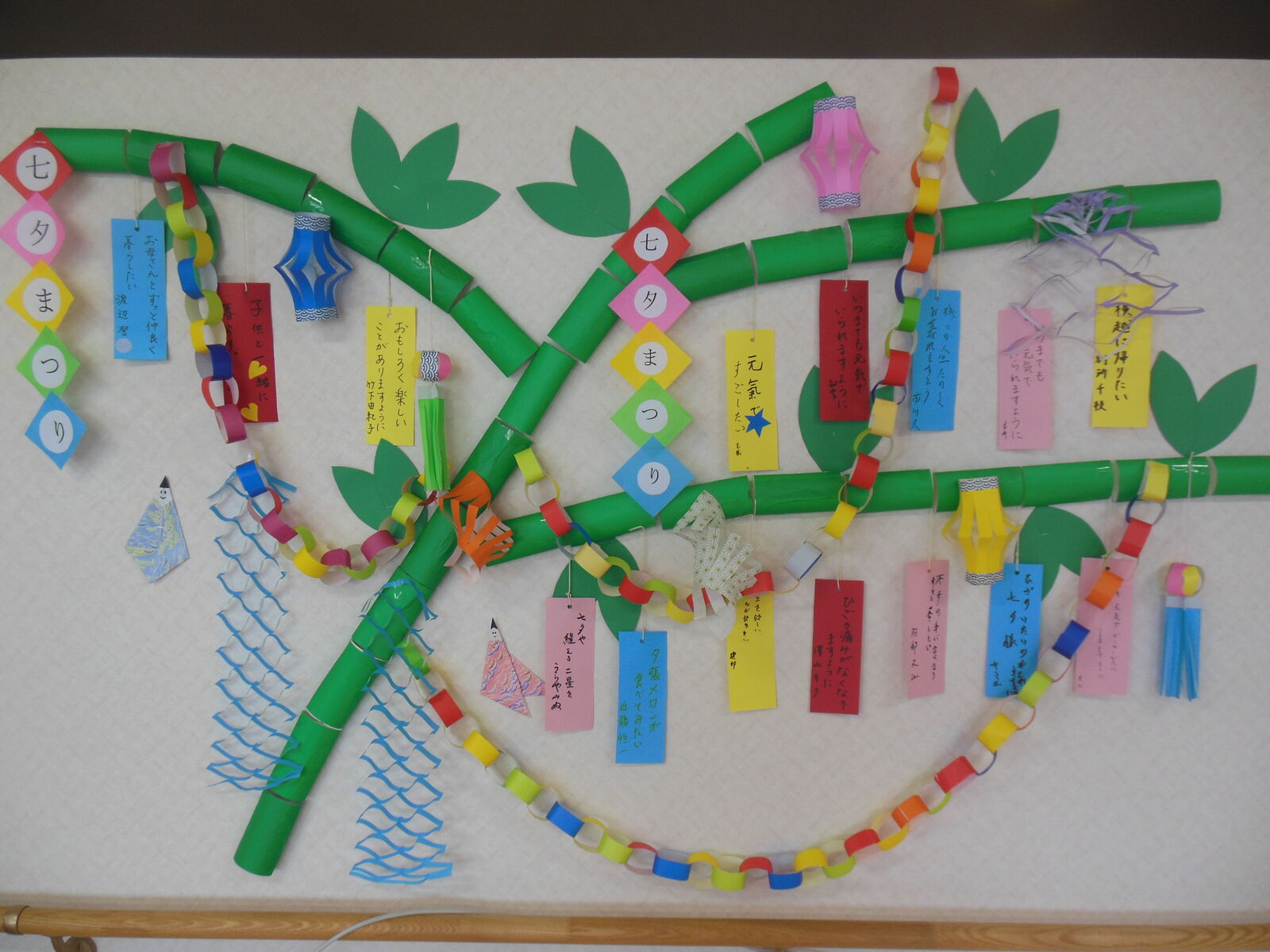 無料ダウンロード型紙で「笹飾り」の壁面飾りを作ってみた! 七夕 夏 7月 保育園 幼稚園 介護施設 デイサービス 壁面装飾 製作壁面飾り型紙工房。