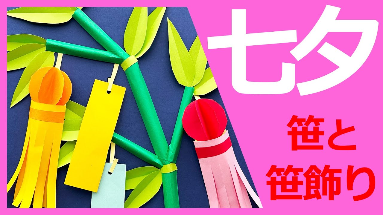 色画用紙手作り「笹と七夕飾り」図工人図工人。