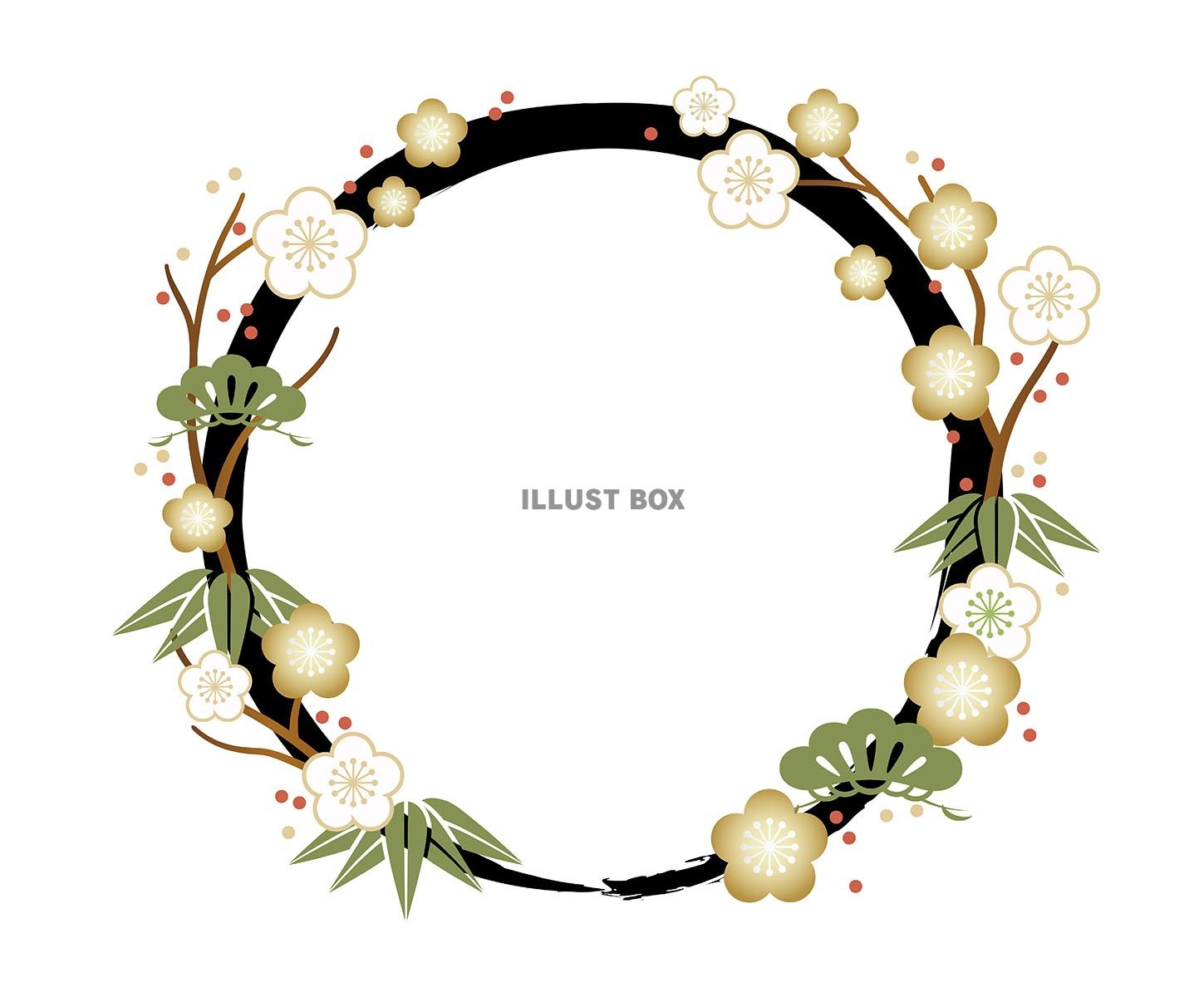 巳年の年賀状イラスト へびと縁起物の円形セット:イラスト無料。