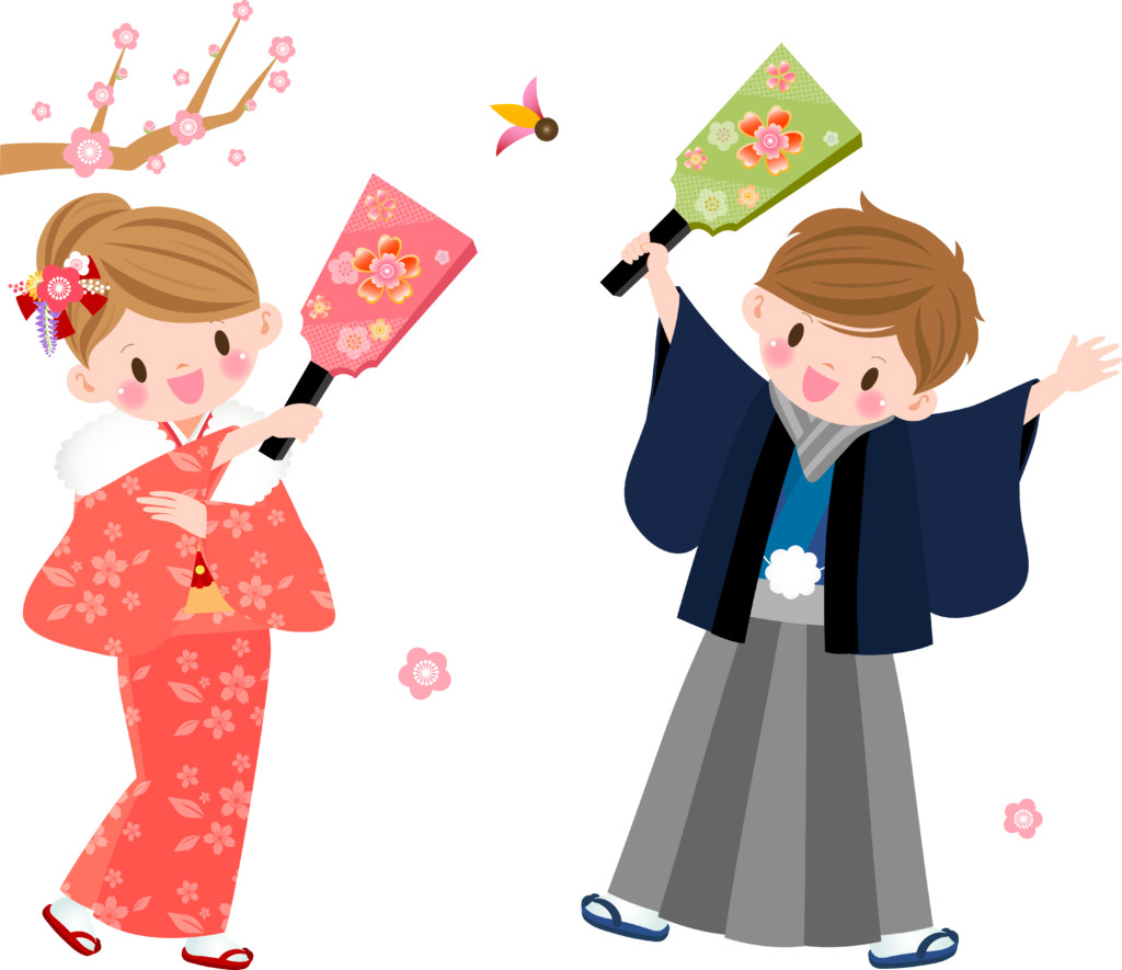 羽子板・羽根つき・正月遊び・年賀状・正月イラスト:イラスト無料。