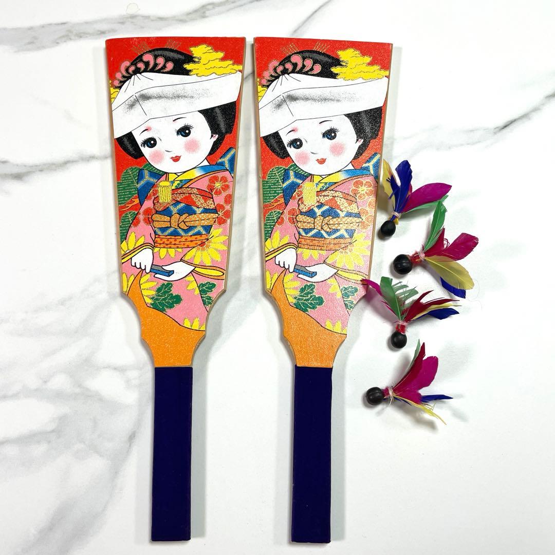 羽子板 昭和レトロ 昔の遊び 羽根つき お正月 女の子柄。