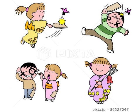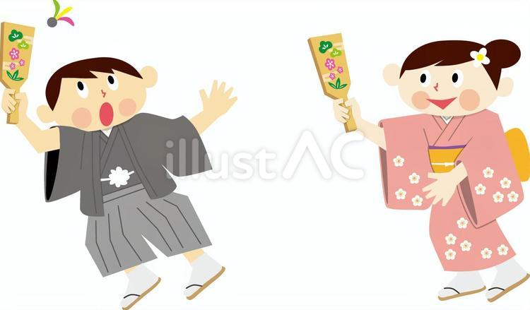 子供の学校生活歳時記お正月羽根つきのイラスト素材86527047- PIXTA。