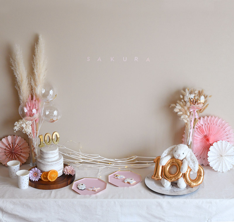 100日祝いのためのタペストリーと飾り付けアイデア。