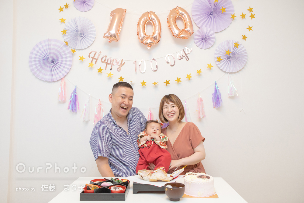 大満足です」飾り付けがおしゃれで和やかなお食い初めと百日祝いの撮影OurPhoto アワーフォト。
