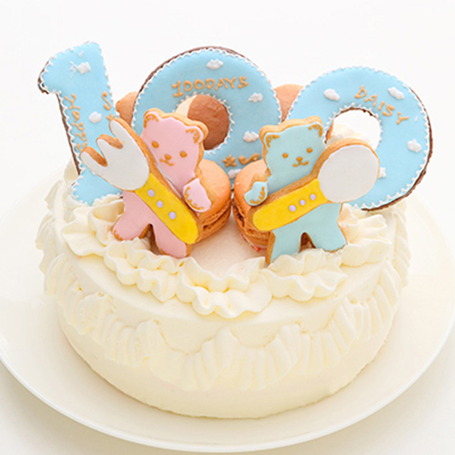 冷凍 お食い初め ケーキ ピンク5号15cm 送料無料アイシングクッキー付 デコレーションケーキ 100日祝い。