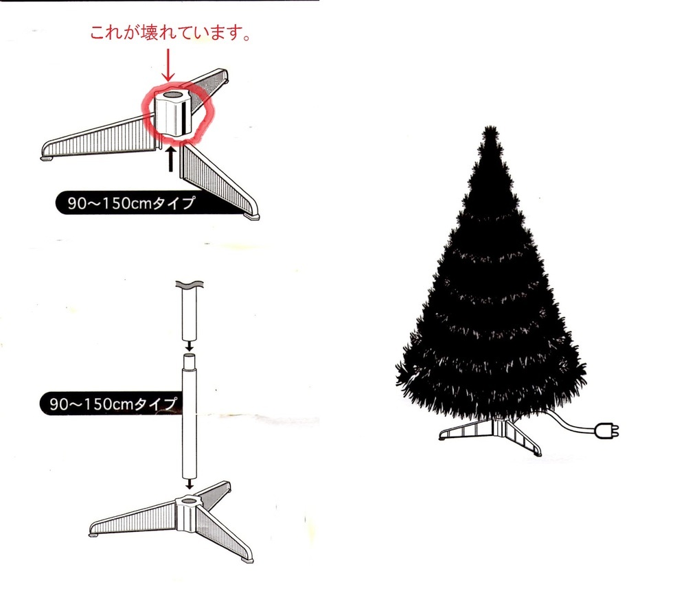 クリスマスツリーが倒れて困る・脚が折れたときの対処法 クリスマスツリーが倒れて困る・脚が折れたときの対処法。