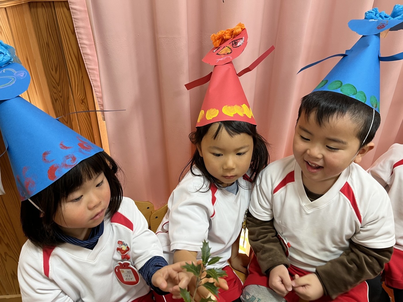 豆まきパーティー久留米市大善寺町だいぜんじ幼稚園。